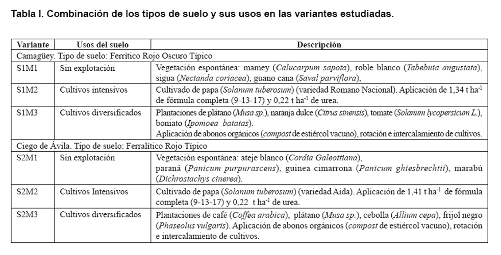 cultivo diversificado y cultivo intensivo) en dos tipos de suelos, un Ferralítico