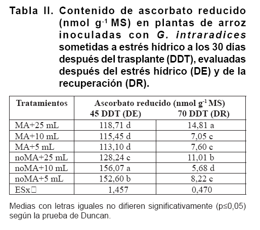 La simbiosis micorrízica arbuscular en plantas de arroz (Oryza sativa L.) sometidas a estrés hídrico. Parte II Respuesta bioquímica