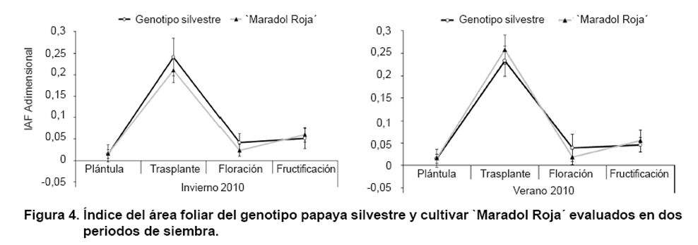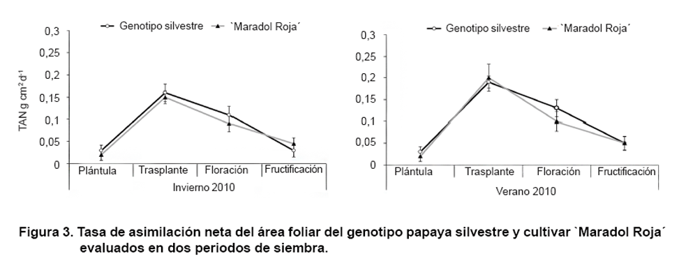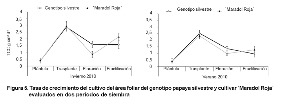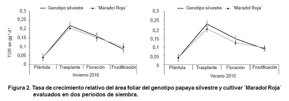 Análisis del crecimiento de un genotipo silvestre de Carica papaya L. cultivado ex situ y cv. `Maradol Roja´
