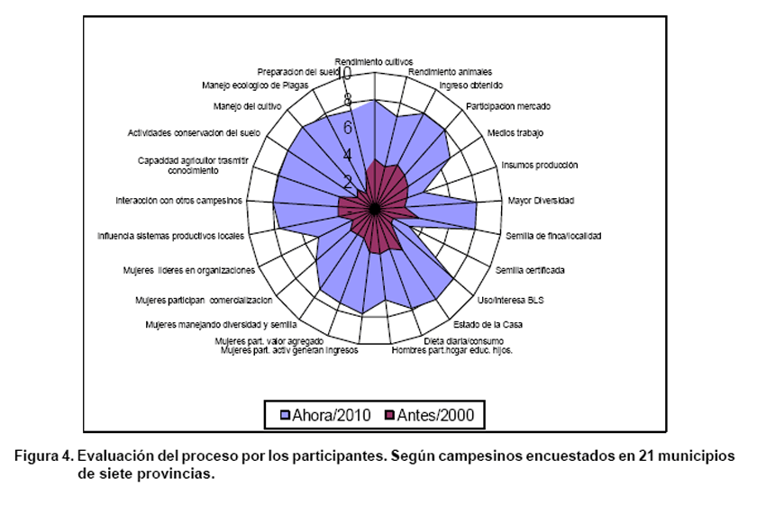 Participatory Plant Breeding Project (FP) first was developed into the Program of Local Agricultural Innovation (PIAL). Later, it was characterized for possessing a common and central element the constant, real and active participation of the peasantry in strengthening agricultural innovation, promoting free access to their agrobiodiversity with a concept of sustainable agricultural production, based on agroecological principles. The FP-PIAL potential as an alternative capable of stimulating the diversification of production, the better management of the agricultural biodiversity and the increase of the yields have been demonstrated from the evidences provided in the last years. At the end of 2011, the PIAL has supported the holding of more than 680 fairs. It can be said that through Agrobiodiversity Fairs, the creation of a farmers’ wide solidary network for the environmental, social and economic benefit of the productive units has been facilitated. This affected strongly in the availability and autonomy of seeds and in the safety and food sovereignty at the Community level. According to existing records, more than 19 500 people including producers and technicians have attended, evaluated and contributed with the dissemination of the diversity of species and varieties exposed in the fairs celebrated to 45 municipalities of ten provinces. Considering the number of participants in the markets and taking into account that the average of varieties selected per participant was five, it can be concluded that 97,500 seed samples of approximately 2 000 accessions.
