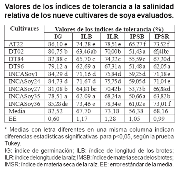 Evaluación de la tolerancia a la salinidad bajo condiciones controladas de nueve cultivares cubanos de soya (Glycine max (L.) Merril)