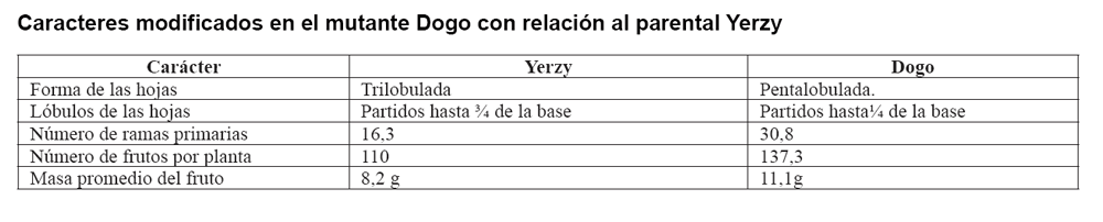 Dogo, nuevo cultivar cubano de Flor de Jamaica (Hibiscus sabdariffa, L) obtenido por inducción de mutaciones con rayos gamma 60Co