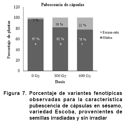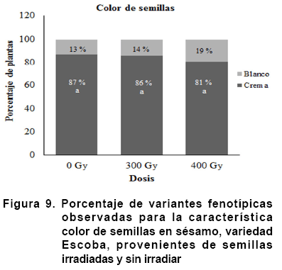 - Los tratamientos con radiación gamma en dosis de 300 y 400 Gy, resultan efectivos como método de inducción de mutación y generación de variabilidad fenotípica en semillas de sésamo.