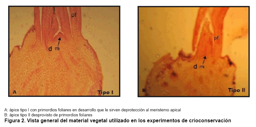 Palabras clave: ápices, germoplasma, histología, vitrificación.