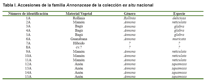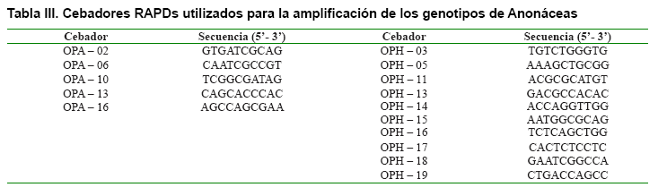tipo RAPD para la caracterización de la familia Annonaceae.